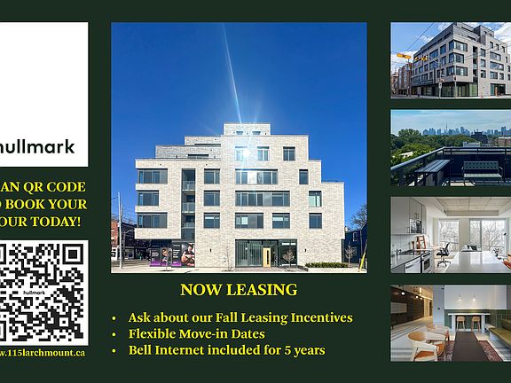 Located in the heart of Leslieville, Toronto's vibrant and eclectic neighbourhood where urban living meets the comforts of a close-knit community. Its tree-lined streets are adorned with quaint, historic homes, providing a warm and welcoming atmosphere. Designed by Superkul, 115 Larchmount is a 47-unit boutique building that stands as a testament to modern convenience and local charm. Its art-deco-inspired design seamlessly integrates into the streetscape, creating a contemporary oasis within this well-established community.
