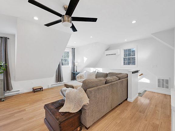 Charming and unique, this 2-bedroom home located across the street from Leavitt Bay on Ossipee Lake offers "peek-a-boo" seasonal views of the water. The home features an open-concept living and kitchen area with high ceilings, overflowing with natural sunlight, creating a bright and airy atmosphere. Sitting above a two-car garage, the home also boasts an adorable kitchen and a 3/4 bathroom, making it the perfect cozy retreat. With ample storage space and the garage offering room for projects or additional storage, this property is ideal for those seeking a peaceful hideaway. Whether you’re looking for a serene escape or a place to enjoy the beauty of the lake, this home has so much to offer. Schedule your private showing today! Home does not have direct access to the lake. Delayed showings. Showings start Sunday May 18th.