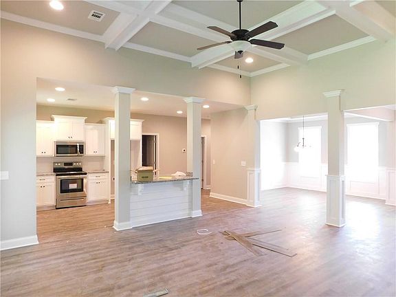 One-level Southern-style Craftsman On 1.43 Acres In Magnolia Ridge! Open Concept Plan Features A Living Room With A Custom Coffered Ceiling And A Kitchen With A Granite-topped Island With Bar Seating And Shiplap Accents, Pantry & Stainless Steel Appliances. The Open Dining Room With Columns And Decorative Custom Trim Complete The Living Area. The Large Master Suite Features A Recessed Bedroom Ceiling, Carpeted Floors And A Master Bath With Double Walk-in Closets, Separate Granite Vanities, A Garden Tub And Double Shower. Three Additional Bedrooms And A Bonus/media Room Complete The Living Spaces In This All Electric, Energy-efficient Home. Rear Covered Porch Just Off The Living Area Is Perfect For ! Living Spaces, Common Areas, Bathrooms & Laundry Share Low-maintenance Luxury Vinyl Plank Flooring. Granite Countertops In All Bathrooms. Plans & Specs Subject To Change At Builder's Discretion Without Notice.4 Bedroom, 2.5 Bathroom