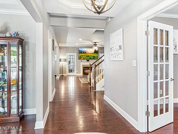 Tennis Courts? Golf course? Gym? Club house? Spa style swimming pool? If you are looking for resort style living, you have found it in the desirable Legacy Lakes! Come and tour this beauty! Downstairs you will be greeted by a spacious living room, magnificent kitchen with gorgeous granite, a gas range, formal dining room with coffered ceilings, a sun room, and two fireplaces eagerly waiting to warm you! There you will also find a fabulous Ensuite (full bathroom and bedroom), perfect for guests! Continue on upstairs to find a huge bonus area that would be great for a second living room or additional space for a play area. There, you will also find three incredibly generous sized bedrooms and full bathroom. Continue on until you enter into the oversized Master Bedroom with 2 walk in closets! Want to relax in soaking tub? Go for it! When you are done, grab your favorite drink or a cup of coffee and head out back and enjoy watching the sunset out on the patio in your very own private oasis! As a special gift, seller is gifting the new buyer $10,000 to be used at discretion, along with a fridge, and swing set!!! This wonderful home is close to shopping, schools, and a quick and easy commute to Fort Liberty & Camp Mackall. Note- property line goes BEYOND the fence, though the woods, past the swing set and close to the neighboring driveway! Don't forget to tour the beautiful amenities while you are here! Welcome home!