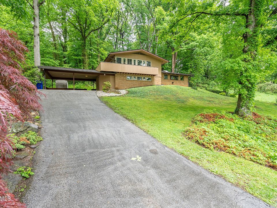Back on market at no fault to seller. Absolutely STUNNING home with unbelievable privacy for the city of Oak Ridge. This mid-century modern home offers plenty of natural light and multiple entertaining areas for the entire family on every level! This home is tucked away at the end of a cul-de-sac, on nearly a full acre of mature trees, next to an Oak Ridge greenway with a playground and soccer field. Gas-burning fireplace keeps the entire house warm in the winter. Updated kitchen features granite countertops from end to end and tiled backsplash to the ceiling. The large bedrooms and remodeled baths are just a few of the main features on the home. A workshop is connected to a storage room that is accessible from inside as well as through the carport. A cellar contains the water heater and the heat-pump blower and more storage space. The backyard area is perfect for the summer grilling and nights by the fire pit!