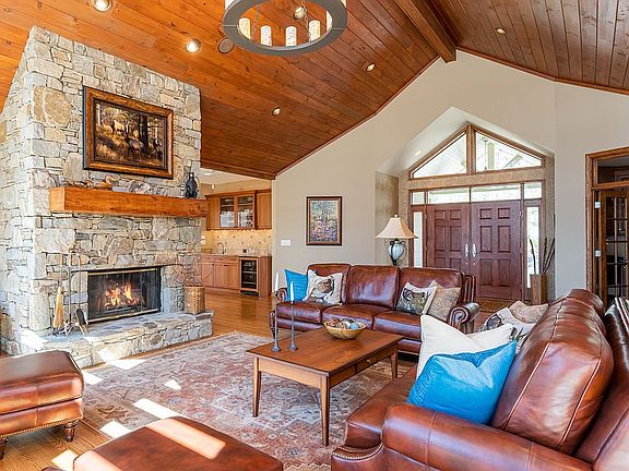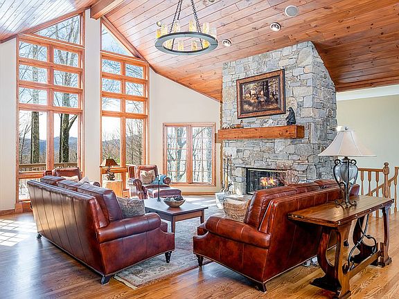 True Mountain Masterpiece! The stunning home located in Champion Hills- a Tom Fazio designed championship golf course- is situated on 1.65 beautiful landscaped acres and seconds from the main entry. Features level entry, open floor plan with wall of windows throughout to enjoy the views and natural setting, vaulted ceilings, hardwood floors, fantastic great room with floor to ceiling stone fireplace and bar area, huge chef's kitchen with granite, upscale stainless steel appliances and gas cooktop, island with breakfast bar, open dining area, master suite with reclaimed wood beams, custom walk-in closet, luxurious bath with double vanity, whirlpool and walk-in tiled shower, library with custom built-in bookcases and desk area, laundry room and powder bath. Lower level boasts huge family room with stone fireplace and bar, study with built-ins, 2nd master suite and 2 guest rooms and bath. Outdoor options abound with the lovely screened porch with fireplace, the open deck or lower patio.