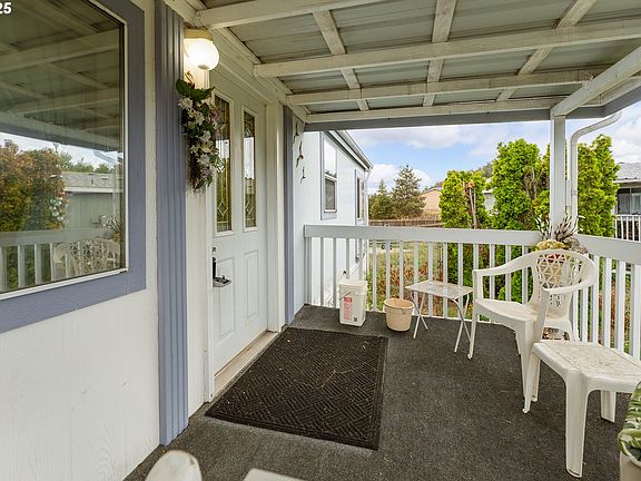 Settle into easy living in this 3-bedroom, 2-bath home with 1,344 square feet of well-planned space. The layout is simple and functional, with a large living room up front, an open kitchen featuring stainless steel appliances, and a dedicated dining area that keeps everyone connected. The primary suite includes its own bath and a walk-in closet big enough to actually use, while two additional bedrooms offer flexibility for guests, hobbies, or an office. Outside, the covered front porch is a quiet spot to sip coffee and watch the neighborhood wake up, and the carport keeps your car out of the weather with a bonus storage area tucked alongside. The yard is level, fenced, and easy to maintain, with an access ramp leading to the back door for added convenience. Located in a well-kept park with low $440 space rent, this home is an affordable step into ownership. Practical, comfortable, and ready for your personal touch. Schedule your private tour today!