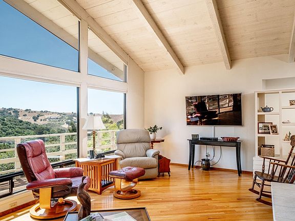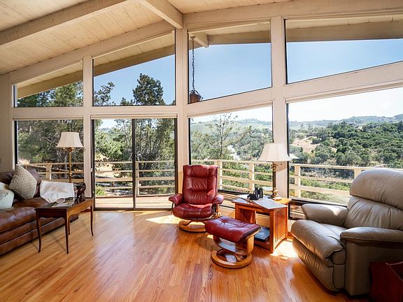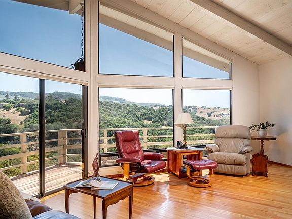 Enjoy natural beauty, sunshine and tranquility in abundance. This lovely three bedroom, two bath home at top of private drive in the Corral de Tierra sunbelt offers gracious country-style living, privacy and convenience. Centrally located just minutes from Monterey, Carmel Valley and Salinas. Living room with high beamed ceiling and floor to ceiling windows to capture panoramic ridgeline views, hawks in flight and inspiring sunsets. Natural beauty out every window will captivate. Quail, bunnies and song birds are daily visitors. Large decks front and back for viewing, entertaining or just relaxing. Oak-studded and gently sloping grounds with terraced areas, corral and vineyards offers possible horse, vineyard and 4H opportunities. Features include hardwood floors, floor to ceiling wood-burning fireplace, dual pane windows, double ovens, pantry, tile kitchen counters, tiled baths, large storage area, and attached two car garage with lots of additional parking.