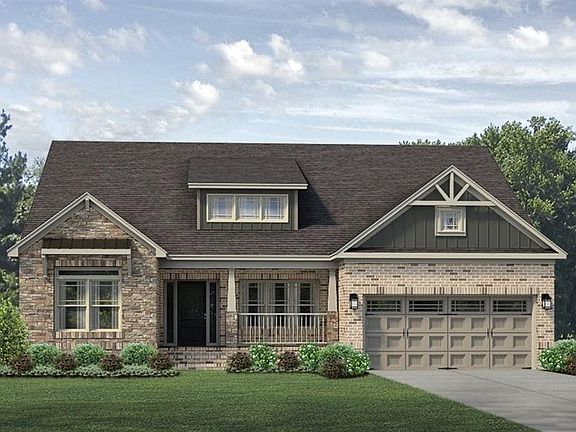 A coffered ceiling foyer leads you into this all-brick ranch with a second story. The dining room at the front of the house has a tray ceiling and an option to add a shiplap accent wall. Bedrooms two and three are adjacent and share a full bath that has an optional tile shower. Past the landing that leads to the second floor, you will find the family room, breakfast nook, and kitchen. Off the breakfast nook, you can add an optional sunroom, screened porch, or covered porch. The incredible kitchen has a large corner pantry, tons of counter space, and storage. The optional chef's package includes a gas cooktop and vented hood, a built-in oven with a microwave above. The kitchen with a counter level bar opens to the family room with its gas log fireplace.  Off of the kitchen is a large "drop zone" placed next to the laundry room. Finishing out the main level is the Owner's suite, featuring his and her walk-in closets and a master bath with a double sink vanity. This luxurious bath can have either a large walk-in shower and oversized linen closet, or a separate shower with a tub. An optional free-standing tub is also available. Upstairs there is a large loft, a full bath, and a fourth bedroom. Also, there is a large unfinished attic storage space. *Photos are Representative*