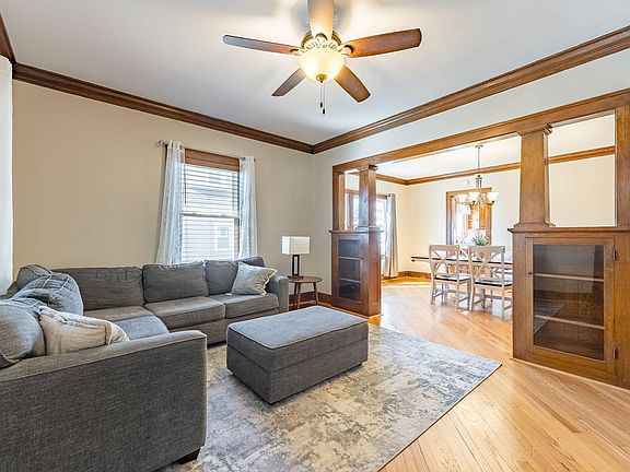 Beautiful Craftsman style home with original details including oak and maple floors, crown molding, columns and built-ins w/leaded glass. This home is in great condition and has been well maintained throughout the years. The bathroom is new as well as the AC and water heater. Conveniently located on a quiet street close to Weed Park, restaurants, and Downtown Muscatine. Vinyl siding and windows make the maintenance easy giving you time to enjoy the fenced in yard and enclosed front porch.