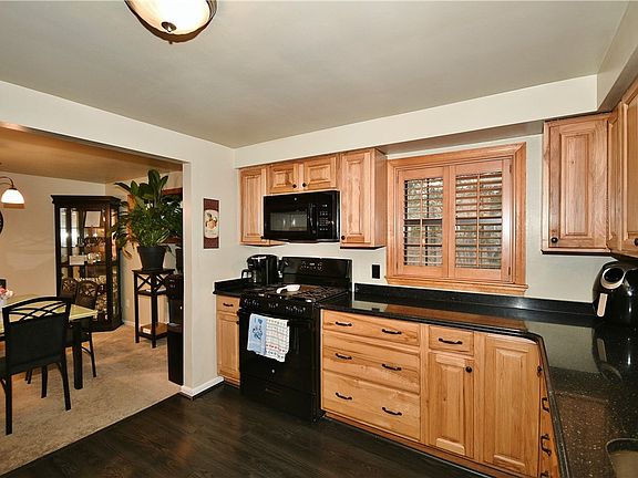 Beautiful ranch style home on a quiet street. Two bedrooms and two full bathrooms. Spacious living room and dining room. Beautiful spacious kitchen with hickory cabinets and black quartz counter-tops. Tons of cabinet space. Stove, refrigerator, dishwasher and microwave are included. Large finished basement can be a large bedroom or family/gameroom. Basement has nature stone brand flooring with recessed lighting & small office nook area. Separate laundry room. Central Air. Smart Thermostat. Walk out from the lower level to the covered patio and level fenced rear yard with shed. Driveway and Garage (with smart garage ID). Beautiful hardwood flooring is under the carpet. Close to shopping and major roadways. Home warranty included