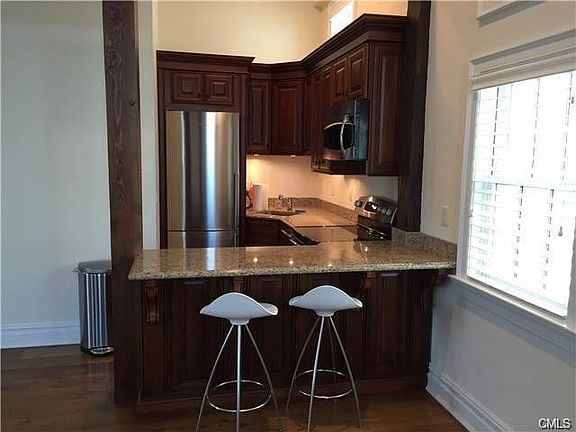 Luxury loft apartment in downtown Westport. Recently renovated, large exposed wood beams, super high ceilings, and lots of natural light. Private balcony overlooking Main Street. Gourmet kitchen with stainless appliances, granite counters, and breakfast bar. High-end full bath, walk-in closet with built-ins, and private laundry. Walk to shopping, restaurants, library, and Saugatuck River. Great for home office use, too. Available immediately. Tenant pays separate utilities. Pets may be considered.