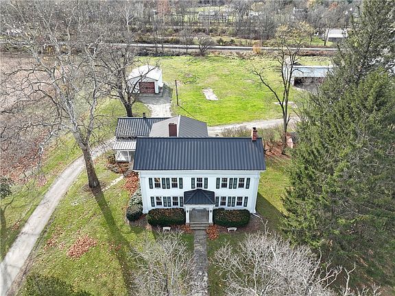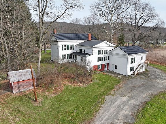 Here is the opportunity to live in a large historic farm house, Dr Cooper lived here which is why the village is called Coopers Plains. Large barns for horses, goats and cows. Acreage to grow your own fruit and vegetables. The house is 4,765 square feet with a new roof and windows, 5 bedrooms, old wide plank floors and high ceilings, original woodwork. Large non-working fireplace. Large shop building and old style dairy barn. Close to all that Corning has to offer with Market Street, Corning Museum of Glass, SUNY college, Rockwell Museum, shopping but out of town for privacy and room to farm. Town water and septic is available at the road. Buyer must accept recent survey. Raise your family here or set it up as a vacation rental.