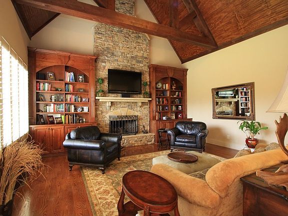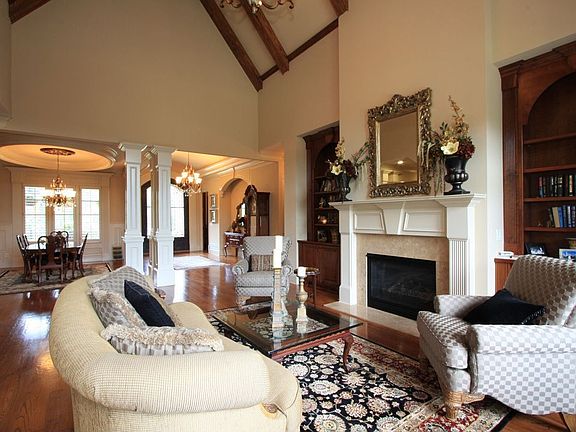 Barrel-Vaulted Foyer, Paneled Library with Fireplace,Beamed Great Room with Fireplace,Outdoor Veranda, Epicurean Kitchen,Main Level Master Suite with Luxurious Bath, Two Additional Bedroom Suites with Private Bath on Main, Additional Bedroom and Media Room/5th Bedroom on Upper Level,Full Unfinished Basement, Front Porch, Stone Side Porch, Motorcourt, 3-Car Garage, Beautiful Landscaping