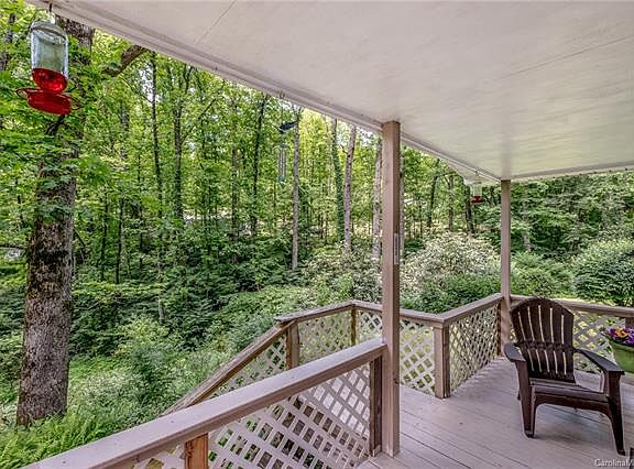 A lovely private wooded setting in the country but only five minutes from downtown Brevard. This property is located on a private road with a modest $100/year road maintenance agreement. The home sets in the middle of the 0.8 acre property making it very private. A flowing stream runs down one side of the property. The well maintained home is move in ready. A ductless 18,000 BTU Gree heating and cooling unit was just installed in early June 2020, supplementing a whole house kerosene fired heating unit which was installed in 2018. The 3 bedroom 2 bath open floor plan is included in the photo display. The covered front porch overlooks the property with ample space for gardens. There are no deed restrictions so raise your own chickens and fresh eggs. There are two outbuildings on the property. A new deck will replace the present deck and will be installed before closing. The metal roof was installed in 2009. Seller needs 2 months lease back after closing.