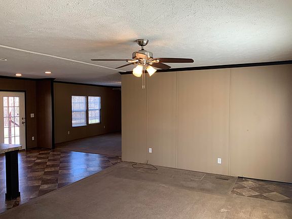 Looking for something out of town and on some acreage? Look no further, this four bedroom manufactured home situated on 4 acres is just the right place. Large open living area opens to the large kitchen area that features a large center island where everyone can gather! Adjacent to the kitchen is a dining area, then an open family room! The main bedroom has a large walkin closet, nice bath with jetted tub, shower and double vanity sinks. The other three bedrooms are good sized and have an adjacent guest bath. Next to the kitchen, there is a door that looks like cabinets, but opens into a nice office area and pantry area. There is a covered back deck area. This home is on a permanent foundation/full slab with tie downs which will qualify for various financing options! Do not delay on this!