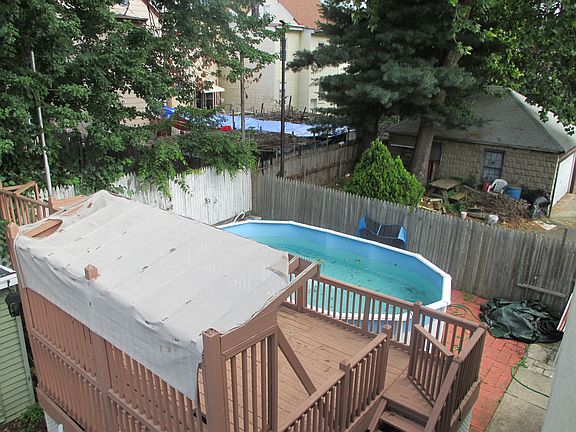 Extra large two family home on large lot in good condition located on quiet one way street. First flr and 2nd flr both have 3 bdrms, liv rm, din rm, eat in kitchen and full bath. 3rd flr which is part of 2nd unit at this time, has kitchenette area. liv room, bedrm and full bathrm.. Full unfinished basement with laundry hookups. There is also additional laundry hookups on 2nd and 3rd flr. Utilities for both units are separate, the first floor furnace is brand new. First floor bathroom was also renovated this year. Driveway which fits up to 6 cars also includes large 1.5 car garage on it. Driveway is also gated. Backyard which is fenced in, includes nice deck for bbqs and above ground pool for summer enjoyment. Security system. House is well kept but it is an estate sale and is being sold as-is! New Taxes are approx and based on new 2015 city assessment