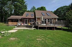 Horse lovers take notice. Beautiful 6.7 acre setting with pond. Adorable house with eat in kitchen, 2 full baths, skylights.