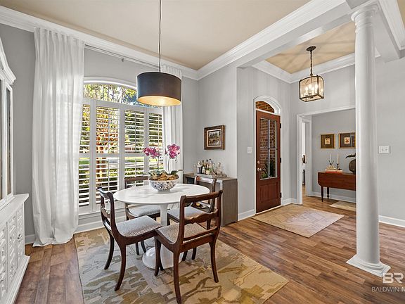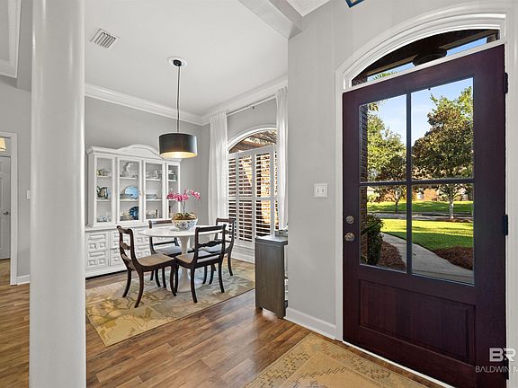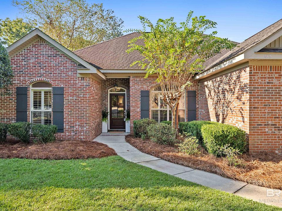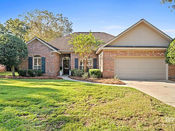 Beautiful custom brick home in Fairhope's Gayfer Estates Plantation neighborhood. This split floor plan includes 3 bedrooms, 2 baths, and a fabulous open living space with separate dining area. Custom plantation shutters, upscale lighting, and crown molding are found throughout. The kitchen includes custom wood cabinetry, stainless steel appliances and granite counter tops with bar seating, an adjoining breakfast room overlooks the large lush backyard. The primary suite boasts tray ceiling, recessed lighting, and a spacious primary bathroom with a dual sink vanity, separate shower, large walk-in closet, jetted garden tub and a private water closet. The property is situated on a large lot with a private fenced in backyard. There is also an added irrigation system to make lawn maintenance a breeze. Convenient to everything in Fairhope and the Eastern Shore, this community is a must see with sidewalks throughout and a great community green space with grills. Will be Active 9/21/24 Buyer to verify all information during due diligence.