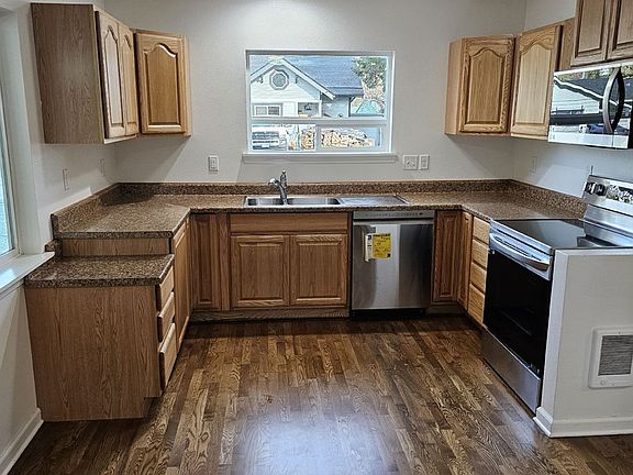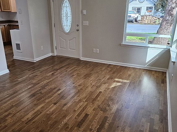 Classic mid-century one level home with 2 large bedrooms. House is in near perfect condition. Completely restored in 2015 and just refreshed in 2024. 2015 restorations include NEW: roof, sheet-rock walls and ceilings, oak floors throughout, windows, moldings, interior/exterior doors and trim, insulation to current standards, plumbing, electrical service, interior wiring, On-Demand hot water (for entire house) and kitchen cabinets with pullouts.The 2024 touch-up includes refinished oak floors, complete interior paint, bath remodel with new tub/shower and sink with vanity. Kitchen has new Samsung appliances: refrigerator, electric stove, dishwasher and microwave hood vent. City says sewer service line to street replaced in 2010. Roof certification available.Large backyard accessible by separate driveway with room for shop or garage. Full sized carport with room alongside for RV or boat parking. Location is on a wide quiet paved street close to banking, Legacy Medical Center, and Grocery Outlet. Seller is a licensed Oregon real estate agent.