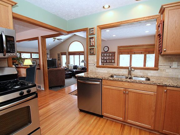 Immaculate ranch on expansive private lot*Open floor plan with kitchen, great room, and living room flowing together*Gleeming hardwood floors that you must see to believe*It has all been done for you--gorgeous new kitchen w/ granite and stainless, 2 newer baths, vinyl siding, tear-off roof, driveway, furnace, AC, water heater*finished basement*Tremendous value--won't last