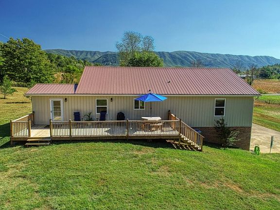 Move In Ready and Magnificent Mountain Views!! Main level of home offers 3 bedrooms, 2 baths, living room, kitchen/dining combo, all occasion room and wonderful Florida room on the front of the house to enjoy morning coffee, the mountains and countryside. The lower level has a large family room, 2nd kitchen, full bath and 2 car drive under garage. Sellers have done a few updates to the home and property; metal roof, metal siding, HVAC unit, 12x12 mud/all occasion room, new master bath with custom cherry cabinets, new carpet over hardwood floors, walls & ceiling on main level have been painted, the latest is the kitchen with custom oak cabinetry, quartz countertops, luxury vinyl planking and LG Black Stainless Steel appliances. Added a 12x36 back deck for entertaining. Approximately 2/3 of the property has been fenced and cross fenced, barn has water and electric plus tyvek under the metal siding, metal roof and concrete floor. The barn is not just for horses.....it would be a great building for refinishing or storage of antique cars, a shop for working on vehicles or you decide.