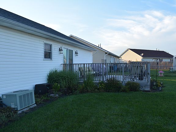 Beautiful open floor plan, move in ready, just bring your furniture. House offers 3 nice sized bedrooms with closets and 2 bathrooms, one is located in the master bedroom.The living room has newer carpet thru out. There is a sliding glass door that leads to the large 16x20 deck that is 3 yrs old. The back yard is fenced in with a 12x12 shed that has electric ran to it. The house also has a prennial flower bed that wraps around the house. The house has a one car garage and the garage door opener stays with the home. With this floor plan it gives the home a spacious feel. This home is a must see!!