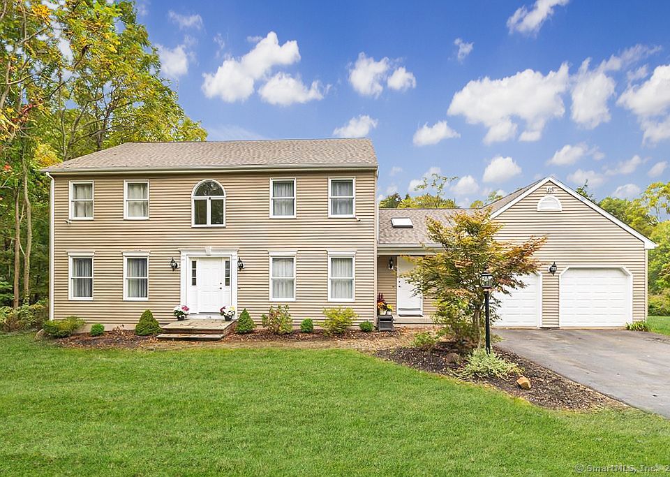 Welcome Home! This beautifully maintained Colonial offers the perfect blend of comfort and functionality, set on a private lot surrounded by nature. Featuring 3 spacious bedrooms and 2.5 baths, this home is move-in ready and designed to impress. Step inside to find an inviting open layout with hardwood floors, a bright kitchen with granite counters, center island cooktop, and double ovens-perfect for entertaining. The kitchen flows seamlessly into the dining and living areas with a cozy fireplace. Upstairs, the large primary suite includes a vaulted ceiling, walk-in closet, and ensuite bath. Enjoy year-round comfort with central air and peace of mind with a new roof. The 2-car garage provides convenience and plenty of storage. The backyard is a true retreat, featuring a large deck, above-ground pool, firepit area, and a storage shed-all set against a backdrop of mature trees and greenery. Conveniently located in a desirable neighborhood close to schools, parks, shopping, and highways-this home offers the best of both privacy and accessibility. Don't miss your chance to make this one yours!