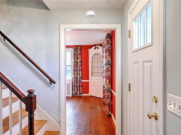 Charming Cape situated on a private, oversized wooded lot at the end of a cul-de-sac. Truly on the most desirable lot on the street, the home features hardwood floors throughout and a lovely enclosed porch/breezeway connecting the garage to the house, with French doors leading to the large deck. The private yard has a fully fenced in area for pets or a large garden, and the lot backs to the woods. There are two bedrooms and a full bath on the second level; the first floor has an expansive living room with fireplace, kitchen, dining room with built-ins, and a study and powder room. Newer roof, full unfinished basement. The garage door needs repair/replacement. This well-loved home needs some TLC, but will be an excellent starter home or downsize for the right buyer! Estate sale; being sold as-is. Don't miss this opportunity to invest in a lovely property in a desirable location!