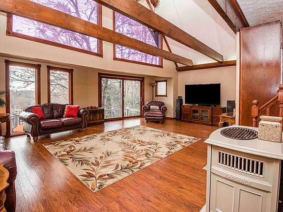 Contemporary home nestled in a wooded 6 acre tract near Norris lake. Beautiful view. Custom kitchen cabinets have lots of storage, breakfast bar and island. Huge great room with Cathedral ceilings, master on first floor as well as second floor. All light fixtures updated along with many other updates. Detached Apt. - no plumbing. HVAC is two years old. One year Home warranty.