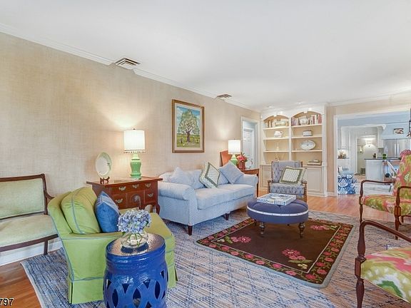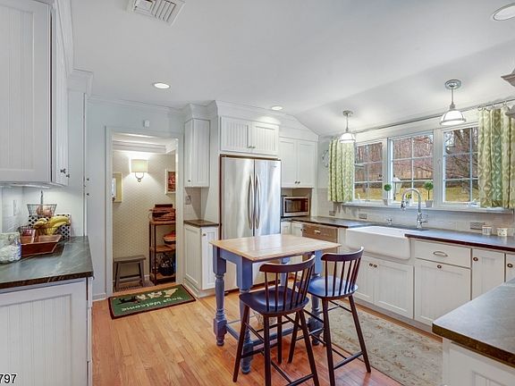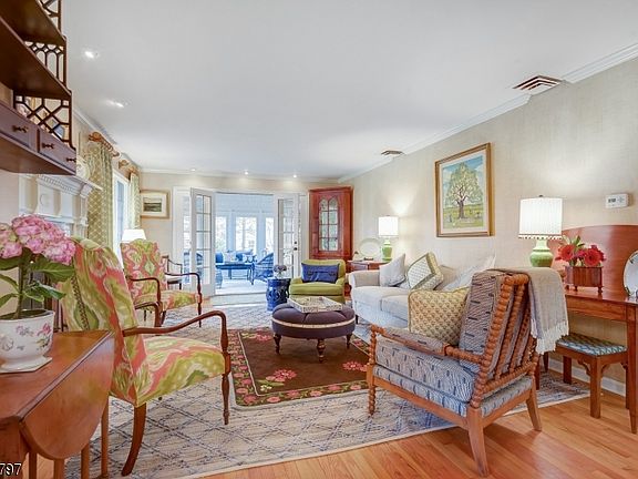 Stylishly Updated Bernardsville Mountain Ranch Light, bright and airy rooms updated in a fresh color palette and filled with on-trend design elements characterize an expansive ranch on the Bernardsville Mountain. Set on 0.7-acre amid level, open property featuring green lawns and mature trees, its scenic location overlooks golf course views of the Somerset Hills Country Club. One-level living is offered in an open floor plan containing four bedrooms and four full baths. The beautifully finished walkout lower level has additional living space, while an attached two-car garage is another amenity in this gracious home. Highlights of the sun-splashed layout include wood floors, a wood-burning fireplace, recessed lights, a sparkling gourmet kitchen, a 2019 master bath upgrade and numerous windows framing verdant views. Approached by a landscaped paver front walkway, this ranch has maximum curb appeal and a clean, modern aesthetic. Outdoors, a level fenced backyard is enhanced by a gorgeous bluestone terrace for warm weather entertaining. Inviting gathering spaces begin in the living room designed with a handsome fireplace, custom built-in cabinetry and crown moldings. French doors reveal a cathedral ceiling sun room filled with natural light from windows and glass doors on three sides. The welcoming kitchen contains white cabinetry, Vermont honed granite countertops, stainless steel appliances including a professional-grade gas propane range with hood, recessed lights, a farmhouse sink and adjacent dining/breakfast room. With areas for seating and eating, this dining space continues the home's effortless flow. A mudroom adjacent to the kitchen accesses the attached garage. This level also includes a sun-filled master bedroom featuring crown moldings and California Closets fitted with wardrobe organizers. The recently updated designer master bath is a stylish, spa-like space offering a marble top vanity with a patterned backsplash that coordinates with the patterned tile flooring, a linen closet and shower. Two more bedrooms, including one currently used as a den with a door to the terrace and a full en suite bath, plus another full bath, complete this level. Spacious and fully finished, the daylight walkout lower level has laminate floors, recessed lights and multiple windows. In the family room, a French door opens to the bluestone terrace. A den or home office is sited nearby, and the home's fourth bedroom and fourth full bath features a furniture-caliber sink vanity capped in granite. Mechanical workings include multiple zones of oil-fired baseboard heat, multiple zones of central air conditioning, municipal sewer and well water. Exceptionally well maintained by the current owners, this ranch shows pride of ownership throughout. This captivating residence is located on the Bernardsville Mountain, a prime estate area in Somerset County. Public and private schools, as well as fine dining, shopping and sporting facilities are close by. Bernardsville offers easy access to Interstates 287 and 78 for commuters. It's about 45 minutes from Newark Liberty International Airport and about an hour from Manhattan by car or Midtown Direct train service located downtown.