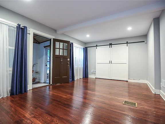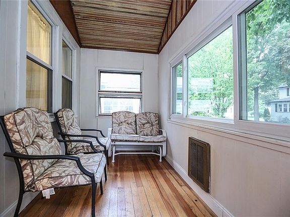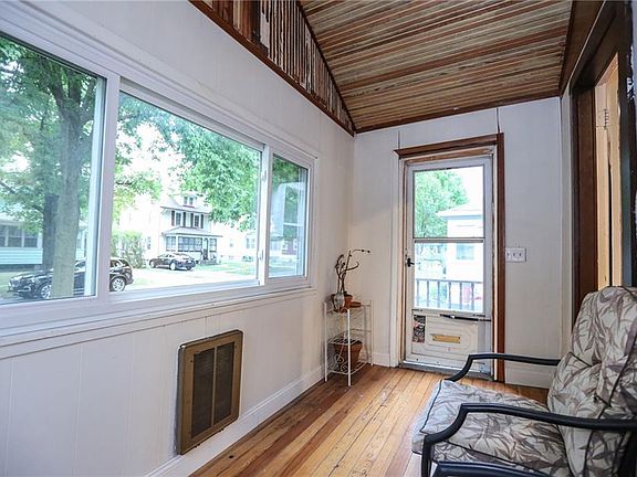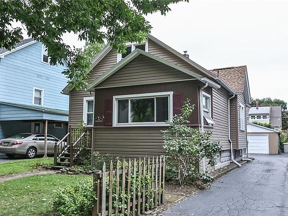 This updated two bedroom, one bathroom home features a newly remodeled kitchen with granite counters and dovetailed cabinetry, updated first floor bathroom, refinished hardwood floors, open concept kitchen/dining room, first floor main bedroom, fenced in backyard, enclosed front porch, rear patio, vinyl replacement windows, programmable thermostat, 1.5 car detached garage. Electrical service (100 AMPS) updated in 2015, Hot Water Tank (2013, 40 Gallon), Furnace (2017), A/C Unit (2003), Average RG&E ($145/month). Please note the second bedroom is on the second floor and the access is through the first floor bedroom. Seller had an estimate to add a staircase in the left side of the living room for $1,700 but never had a need for it. Delayed Negotiations until Monday 9/21/20 at noon.