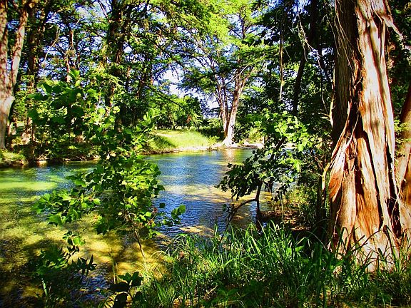 Majestic pecan treesExpansive parcel of landSpring fed medina riverWell houseScenic moffett roadPartial fencingAbundance of fauna