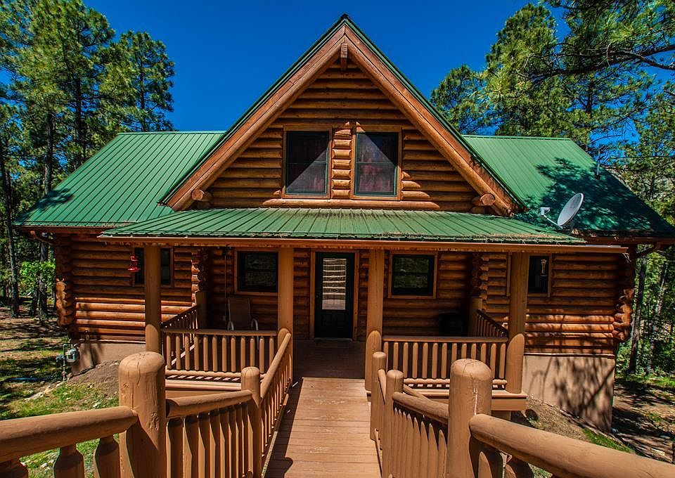 FASCINATING REAL LOG HOME! Enchanting 4 BR/3 BA three-story on approximately 0.60 acres with views. Impeccable one owner, custom built home with living area plus family-den area. Wood beams, wood stove metal-roofed residence boasting French doors to the spacious uncovered deck, front covered deck plus a circular drive. Instant hot water and two CFA furnaces that already have the coils installed for AC. Two master BR on main level. Furnished too. A perfect ambiance for full time, second home or nightly rental and so much more!