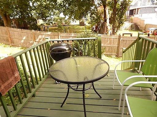 Welcoming 2 possibly 3 bedroom townhouse with 3 levels of living. This small complex sits privately way back from the road and is convenient to train station, highways, schools and shopping. First floor with hardwood floors, sunny eat in kitchen with new counters. Slider off to relaxing deck. Both baths recently updated, full bath with jetted tub. Large master bedroom with custom walk in closet as well as an additional closet .Partial finish basement. Laundry hook ups. Economical FHA gas heat. Low condo fee. Pet's are allowed.
