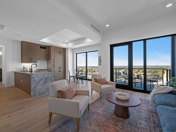 Welcome to The Novus - Durham's premiere new high rise condominium! Open concept space and full length glass maximize the spectacular views. Waterfall edge countertop, integrated cabinet front appliances, and large patio-high end finishes throughout create an air of sophistication. This highly amenities building includes a pool, hot tub, pickleball court, gym, club room, dog park, outdoor theater, and golf simulator among other wonderful features. This unit comes with one dedicated parking spot.