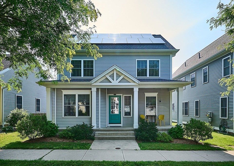 Welcome to this well-maintained 1,868sf 3 bedroom, 2 1/2 bath home in the highly sought-after Village Hill neighborhood. Entering off a charming front porch, the open concept floor plan is bright and airy, with hardwood floors throughout the 1st floor. Upgraded cherry cabinetry, granite countertops, stainless steel appliances (including a gas stove) & a large island are featured in the kitchen. The living room and dining room are spacious. A tiled half bath & separate laundry room complete the 1st floor. Upstairs, the main suite is big & includes a walk-in closet, dressing area & main bath w/ a walk-in shower & glass door. There are 2 additional bedrooms & a full bath with a tub/shower combo. Basement is unfinished but has high ceilings & plenty of room to expand. The backyard is partially fenced & includes a pavers patio.The solar panels are owned. This energy efficient home could be yours! The ONLY showings begin at the Open House on 6/24 from 11-1pm. Please remove shoes.