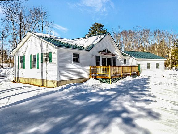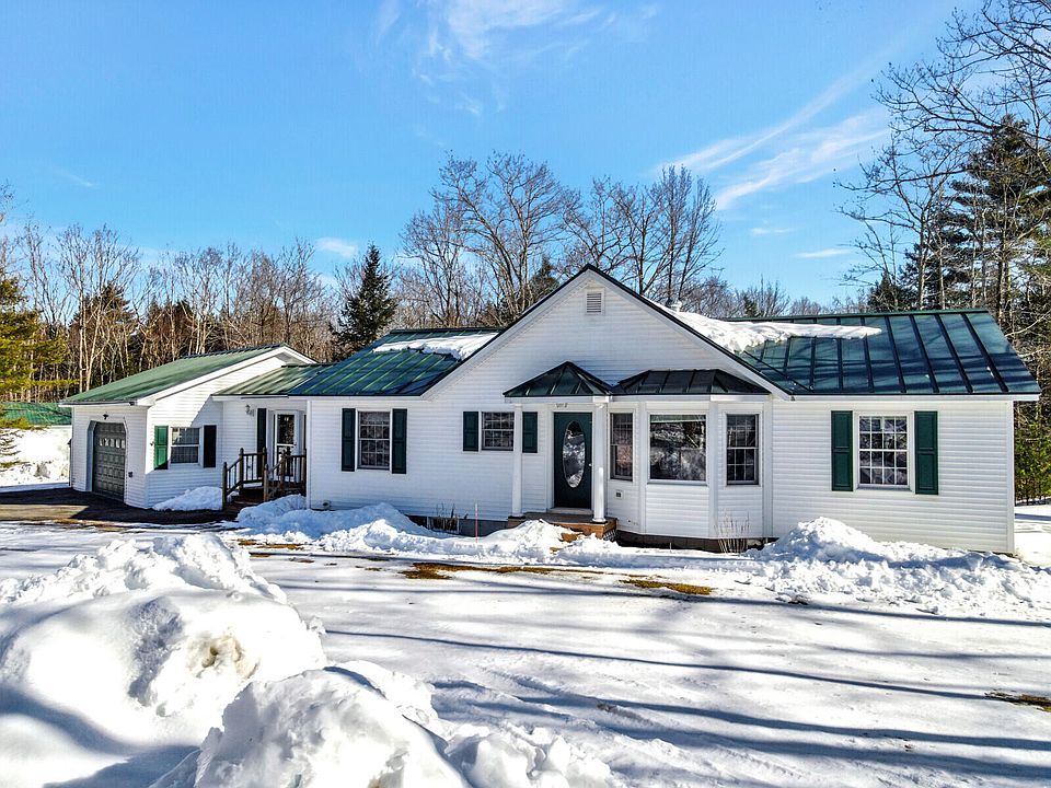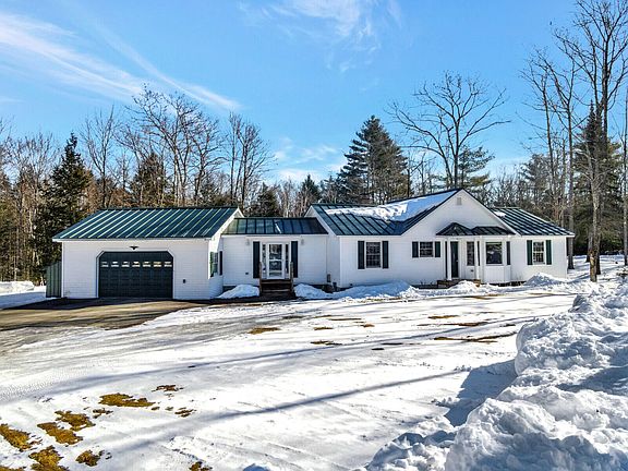 BELGRADE LAKES Thoughtfully designed with comfort in mind, this quality built bright and sunny 2 bedroom 2 bath year-round home offers a wonderful open concept layout, easy one-floor living, direct entry from the attached 2-car garage, Bird'e Eye maple flooring throughout, standing seam metal roof in the heart of the Belgrade Lakes Region on a larger 2.5AC lot. The central living area features stunning cathedral ceilings with a wall of windows for ample natural light, direct access to a large back deck with retractable awning overlooking the private backyard and a newer Regency wood stove with custom granite hearth and new rock chimney. Well appointed kitchen with island, stainless steel appliances, tiled flooring, solid wood cabinetry and a nice dining area is perfect for entertaining guests. Off the kitchen is the primary ensuite bedroom with large closet, tiled flooring and full bath featuring a jetting soaking tub, walk-in shower and linen closet. At the other end of the home is a second bedroom with a closet and a full bath with a shower/tub. The welcoming foyer has nice tiled flooring, coat closet, laundry closet and opens to the heated garage. Full, dry basement with utility area and plenty of storage. In addition, there is a 16' X 32' detached 1-car garage, 8' X 16' woodshed for all your tools and toys. Home has been meticulously maintained, is fully wired for generator hook-up, is privately located on a quiet dead end road and a short distance to many public boat ramps and just minutes to Skowhegan & Waterville amenities and shopping. Country life with all the convenience!