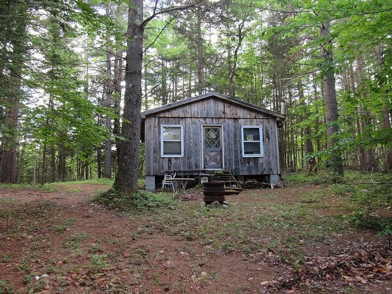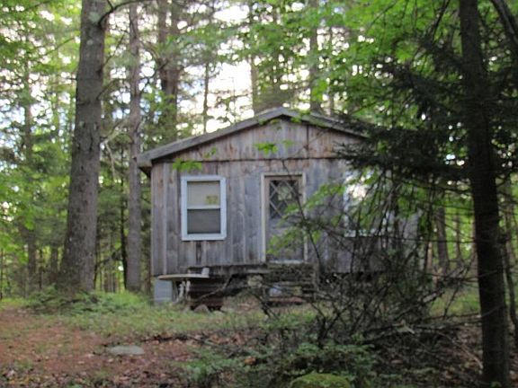 This property is tucked in the woods on an old dirt road bordered by State of NY . The camp is really a one rough camp. There is no water, no sewer, and no power. The property borders state of NY and would be ideal for a hunting camp.
