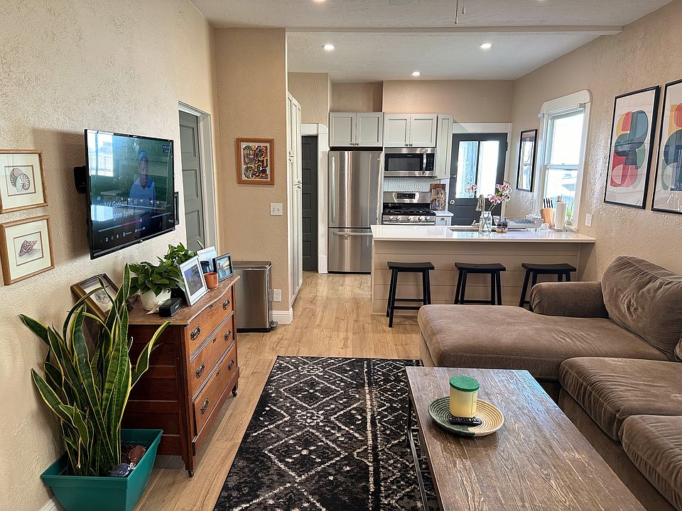 This rental is as close as you can get to downtown without being sharing walls with your neighbors. The house has been recently remodeled, including a primary suite with a completely new and spacious bathroom, new floors throughout, and a brand new kitchen. There are 3 bedrooms and 2 full bathrooms. The kitchen boasts a large pantry cabinet along with stainless steel appliances, a dishwasher, and garbage disposal. The living area has tall ceilings and is fully open to the kitchen. Many large closets throughout, an unfinished basement, and an attached shed will allow for all the storage you need. The backyard is spacious and completely fenced in. Pet friendly. This location is prime, with the greenbelt and downtown within a mile, and an Albertson's just blocks away.