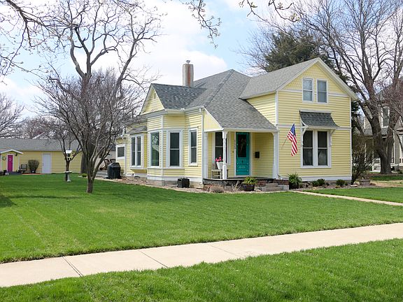 Charming Victorian family home with modern updates in Sterling, Kansas. Located in a nice neighborhood with award winning schools. This home features three bedrooms, 1 bath, wood burning stove, original wood floors, detached over-sized 2 car garage with workshop area, and an outdoor entertaining space. This is an updated, spotless move-in ready home. The home is surrounded by a beautifully landscaped, fescue lawn fed by an in-ground well/irrigation system. Home details include new windows, 2016 high-efficiency HVAC unit, 2016 water softener, 2016 reverse osmosis filtering system, 2017 water heater, 2018 well with automatic sprinkler system and recently remodeled kitchen including new slate appliances (2017).