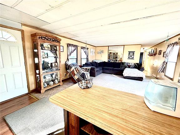 Single wide mobile home with two bedrooms and one bath. Property has detached garage and fenced in yard. Large living room and open kitchen. All appliances stay. Sold as is.