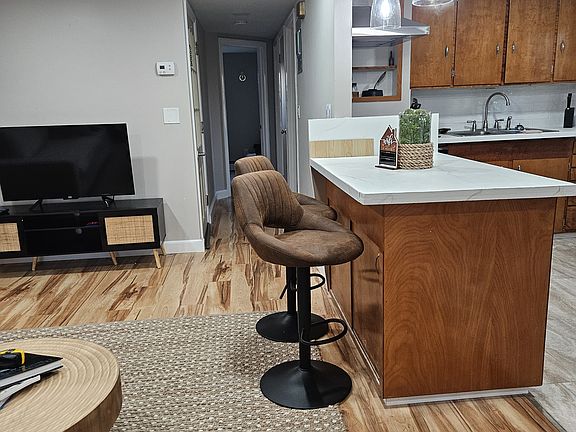 Modern Renovations: Enjoy brand-new flooring, updated kitchen countertops, a remodeled bathroom, all brand new never used furniture (queen bed with memory gel for comfort, pillows, sheets, blankets, Roku smart 43 inch television, TV stand, night stand, utensils, dishes, wines glasses, etc). This unit has it all!