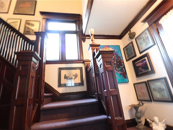 "Welcome" to this 4bdrm,2full bath Victorian.The grand entry is rich with a stunning 2 story original staircase.A new kitchen w/custom cabinetry,double pantry and stainless appl.The double lvrm w/original fireplace,french doors and formal dnrm has striking refinished hrdwd flrs along with a first floor bdrm and a full bath.Second story has 3bdrms,full bath and lndry. rm along with plenty of storage with walk in closet.A newer 2 stall garage and a relaxing front porch to enjoy. Close to Thompson Park and walking distance to local amenities. Call for your personal tour.
