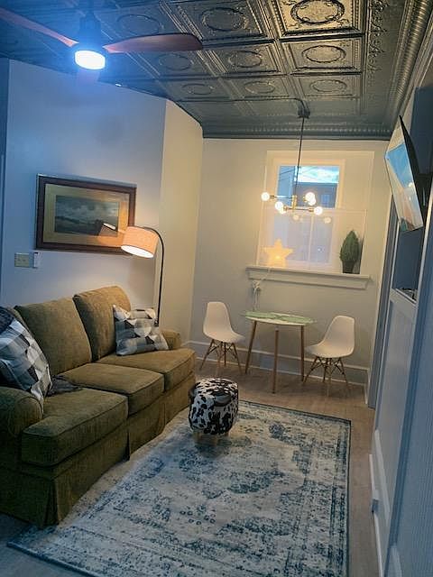 NEW AND FULLY FURNISHED UPSCALE AND STYLISH STUDIO APARTMENT! WANT YOUR OWN SPACE AND A MUCH BETTER VALUE THAN AN AIR BNB RENTAL? ARE YOU IN TOWN ON A SHORT TERM CONTRACT? A TRAVELING NURSE? GOING THROUGH A LIFE CHANGE? THIS IS AN APARTMENT FOR 1 PERSON AND MAY BE JUST THE PLACE FOR YOU! BRING ONLY YOUR SUITCASE! Spacious, Bright, and Sunny this charming and cozy Studio Style Apartment sports a unique Victorian era pressed tin ceiling and has everything......even a private deck on the Falling Spring Stream which flows through the heart of Downtown Chambersburg and a great place to watch wildlife! Fully Furnished and well appointed with Towels, Sheets, Dishes, Glassware, Utensils, Cookware, Keurig Coffee Maker, Toaster, Washer/Dryer, Microwave, Stove, Roku TV, and Refrigerator. ALL UTILITIES ARE INCLUDED IN THE RENT (heat, a/c, electric, water, sewer, trash) INCLUDING TV CABLE AND WIFI Steps to Historic Downtown Chambersburg, Newly Renovated Coyle Free Library, Franklin County Courthouse Complex, Breweries, Wineries, Fresh Air Markets, Restaurants, Galleries, Coffee Shops, Downtown Festivals, and Churches. Rail Trail for walking or biking is just outside the door. Short Walking or Driving Distance to Wellspan/Summit Health Facilities, Letterkenny Army Depot, Wilson College, Major Department Stores, Groceries, Routes I81, 11, and 30 (Lincoln Highway), and Banking ! Included in Rent: ALL UTILITIES Heat, A/C, Electric, Water, Sewer, Trash, Cable TV, WiFi All Appliances and Furnishings as Outlined Above NO PETS/ NO SMOKING MINIMUM 6 MONTH LEASE. APPROVED APPLICATION FOR SHOWING CONTACT US FOR APPLICATION 1ST MONTHS RENT AND 1 MONTH SECURITY DEPOSIT NO APPLICATION FEE RENT INCLUDES: ALL UTILITIES! HEAT, A/C, HOT WATER, SEWER, ELECTRIC, WIFI, CABLE, TRASH