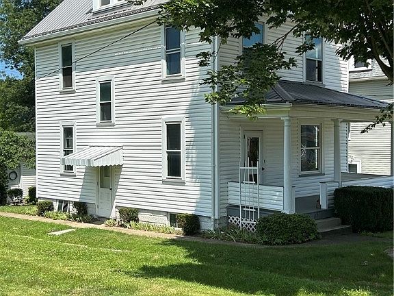 Location! Location! Location! Welcome to 115 N. Milton Street in the heart of Zelienople. Just a short distance to restaurants, shops, and all the events this charming town has to offer. This home has ample curb appeal and you'll love the covered front porch. This hard to find 4 bedroom home with detached garage has beautiful thick wood trim around the windows, hardwood floors under the bedroom carpets, beautiful staircase, and vintage charm throughout. The large living room and dining room boasts plenty of natural light. New metal roof installed in 2022. The huge attic has plenty of storage or could even be turned into an amazing bonus room. A wonderful opportunity awaits your finishing touches in the Seneca Valley School District.