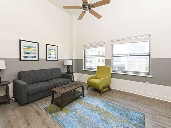 Penn Street Tower shows off it's historical architecture that pulls back the curtain on Indianapolis history while also having updated finishes including stainless steel appliances and granite countertops.