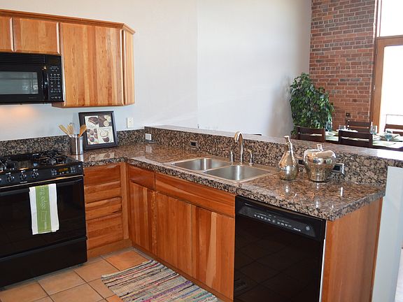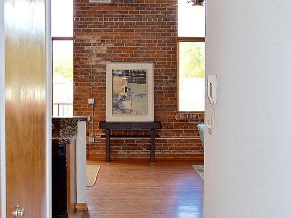 Turn of the century building with full brick exterior walls, 12' ceilings and original fir floors. Conversion in 2002 created this charming loft space and features Pella windows and door with private balcony, cherry cabinets with granite tile counters, large bath with seperate tub and shower, full wall closet and gas log fireplace. New interior paint. Private storage room as well as attached covered parking with secured entry. A gem in the perfect location!