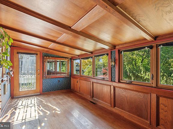 If you're looking for that unique, special home look no further. This one of a kind home offers both the original character with modern conveniences. As you approach the winding driveway you will be surrounded by the lush grounds. Enter through the beautiful wooden front door into the mud room. Also located on this level is the utility room with storage. Head up the stairs into the main living area where you'll find a galley kitchen and large living room with wood beam ceiling and a massive window allowing the natural light to pour in. The focal point of this room is the floor to ceiling stone fireplace with mantel. There is a separate dining room with wonderful built-ins for your special pieces, wainscoting, a wall of windows and an outside entry door. Fall in love with the primary suite featuring an abundance of windows, amazing built-ins throughout the room, architectural columns and french doors leading to a beautiful balcony. There are hardwood floors throughout, stained glass windows and a hand painted mural. The outdoor living space offers a covered patio, mature trees and a small Koi or fish pond built into the garden. There is plenty of storage in the garage and attic with pull down stairs. You'll feel like you're in your own private retreat but you'll have all the convenience close by. Minutes to shopping malls, restaurants, major highways and close to public transportation. Please note, this property is being sold in as is condition and the seller will make no repairs. All and any municipal, township inspections, U&O and permits are at the buyer's expense.