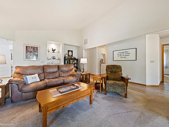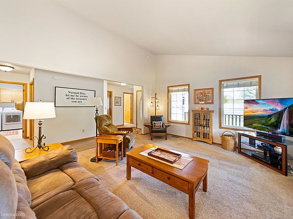 Custom-built three bedroom, two bath home situated near Deer Park Golf Course on an expansive .51 acre park-like lot in the charming community of Deer Park. The luxurious master suite offers ample space and comfort. This distinctive home boasts a delightful wrap-around porch and a spacious shop. The well-insulated oversized shop features a convenient bathroom, furnace and two RV spots - one equipped with water, electric, and sewer connections, while the other offers water and electric hookups. Additionally, there is a versatile she-shed/man cave that provides the ideal space for entertainment or storage. The oversized driveway and attached 2 car garage can easily accommodate all your recreational vehicles and toys. Inside, you'll find an inviting living room, a formal dining area, and a cozy breakfast nook, perfect for hosting guests. The residence also features a built-in vacuum system for added convenience. To add warmth and ambiance, a gas fireplace graces the living area.