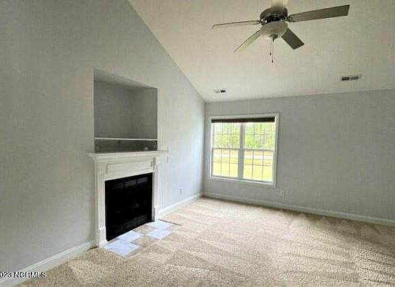 This spacious 3-bedroom, 2.5-bath home offers an open floor plan with vaulted ceilings, gas-log fireplace, and generous natural light. The upgraded kitchen features stainless steel appliances, custom cabinetry, retractable faucet, and large pantry. Upstairs includes three large bedrooms all with ceiling fans and ample closet space. The master suite boasts a cathedral ceiling, walk-in closet, dual vanity, garden tub with ceramic backsplash, and separate shower. Additional highlights: room-darkening shades, 6'' baseboards, wooden staircase, laundry room with built-ins, epoxy-coated garage floor, 14x20' deck, covered front porch, and a huge privacy-fenced backyard. Conveniently located near schools, shopping, and all area military bases! Come see your new home!