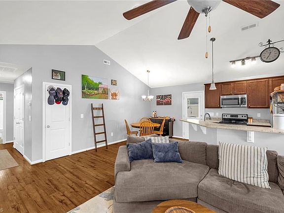 Welcome to this adorable home featuring a cozy open floor plan with vaulted ceilings in the living room, creating a bright and airy feel. The living area flows seamlessly into a delightful kitchen, complete with granite countertops and modern finishes. Enjoy three spacious bedrooms, including a primary suite with a double vanity and roomy walk-in shower. Whether you're hosting guests or enjoying quiet evenings at home, this layout offers comfort and functionality. Step outside into your private, fenced backyard—perfect for relaxing or entertaining. Watch the Fourth of July fireworks from your own yard, or catch the festive Christmas Parade just steps from your front porch! Located just minutes from shopping, dining, and major highways, this home offers unbeatable convenience and small-town charm. A must-see opportunity in Kernersville—schedule your tour today!