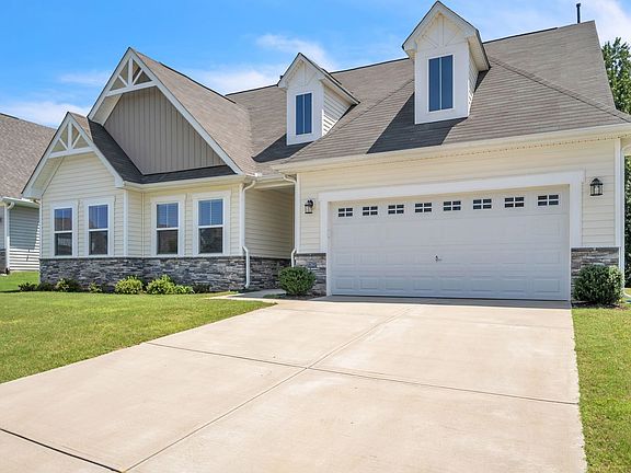 This is a fantastic one level home with a great floor plan and is meticulously, well cared for by the original owners. Backing up to natural woods, this lot offers rear privacy and easy maintenance. Upon entering the home is a spacious foyer that directs you to the main living spaces. The kitchen, dining room, and living room area is a wonderful open concept with an amazing view of the backyard and woods behind. The owner suite is separate from the other bedrooms, allowing privacy. The oversize two car garage also has extra workshop/storage space. The sellers upgraded the garage door to have windows for natural light and the garage interior is finished and painted. through the mudroom is the kitchen with gorgeous countertops, stainless appliances, and extra cabinet storage on all four sides of the island. Upon stepping outside is the oversized covered patio and extensive landscaping done by the sellers. Owner has cleared the hill to beyond the creek. 2020 sided backyard and added plants 2020 added sprinkler system 2020 added the steps to the creek 2020 ceiling fans, 2020 install 2 1/2 inch blinds, 2021 exterior patio ceiling fan 2021 storage cabinet in master water closet 2021 added residential air cleaner/auxiliary safety switch/HVAC surge protector/compressor saver 2021 drapes and Hardware Installed 2021 installed motion sensor, lights/dust to dawn bulb on the back patio 2021 added keypad to garage door. There is also a tubing track system for pest control in place. Be sure to find the secret laundry chute between the master closet and laundry room!