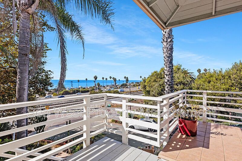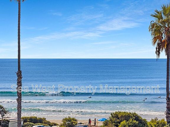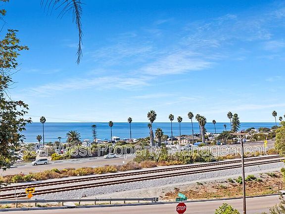 California Dreaming doesn't need to be a dream anymore... Here is your opportunity to take advantage of the coastal lifestyle that others can only imagine. Relax and enjoy the waves crashing on the beach from your private decks that extend the inside living rooms to expansive exterior living on your 650 sqft. patio! This home exudes midcentury charm with its thoughtfully designed interior, featuring 2 bedrooms and 1.5 bathrooms, along with stunning whitewater views from the comfort of your living room. With new carpet, fresh paint, and new window coverings, it's move-in ready. Enjoy the convenience of a large 1-car garage, off-street parking, and a spacious West and North-facing deck perfect for taking in sunsets or relaxing. Located directly across from San Elijo Campground and within walking distance to Seaside Market, restaurants, and more, this home is your gateway to the coastal lifestyle. Amenities: No Pets, New Carpet, New Paint, Whitewater Ocean View, New window coverings, Large 1 car garage, Off street parking, Walk to San Elijo Campground, Beachside Community, 12 month lease, unfurnished, Water Included, Trash Included, Landscaping included